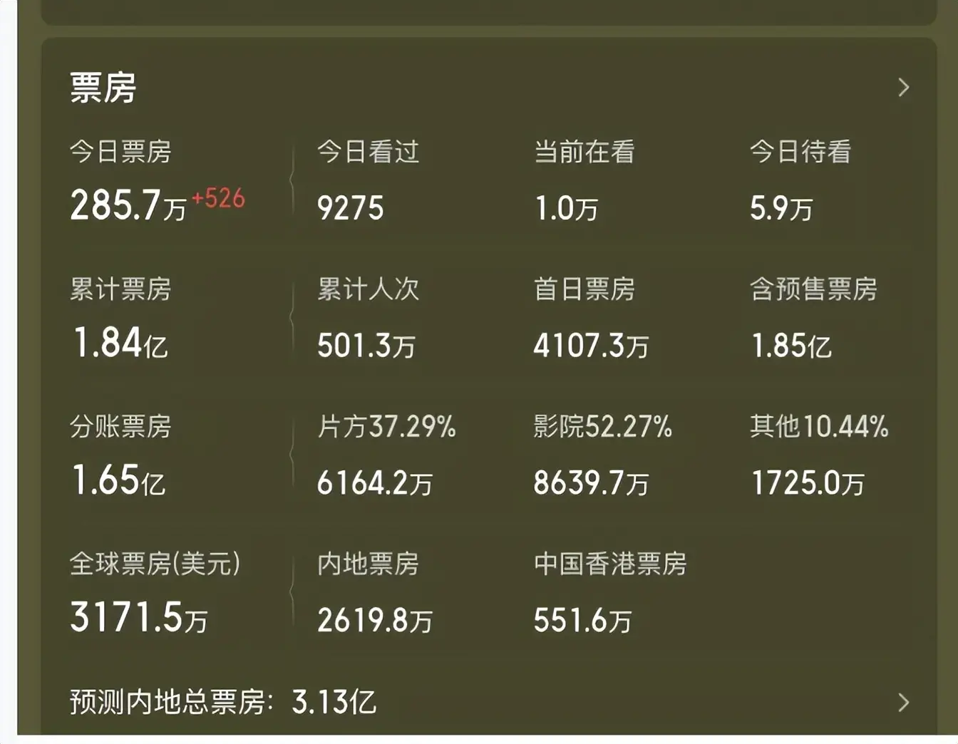 片方差不多分账1.3亿,那么亏损额也是上亿的了,这还是很乐观的估计了。
