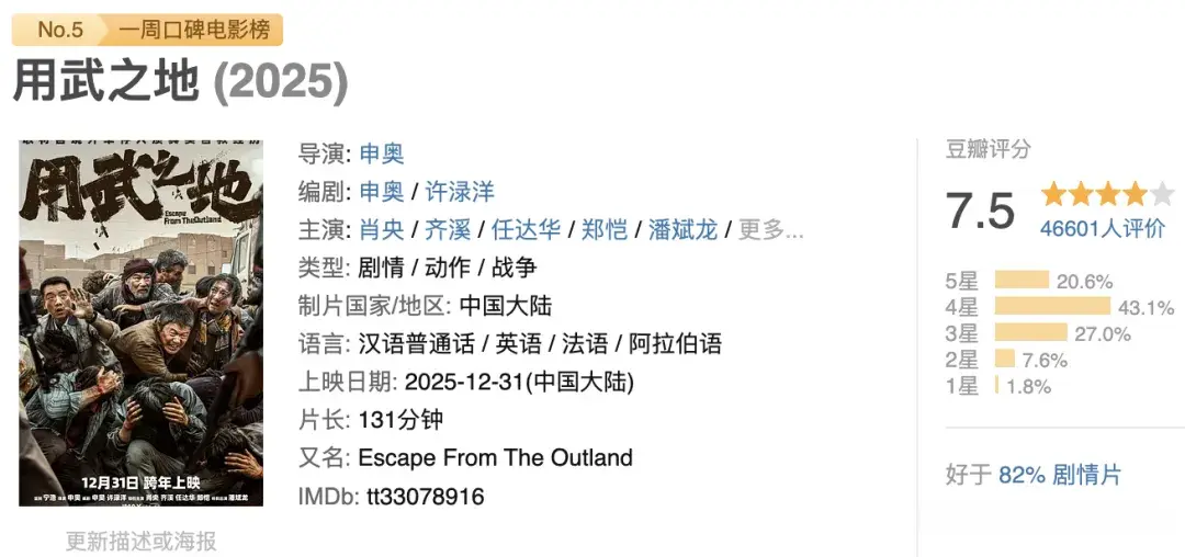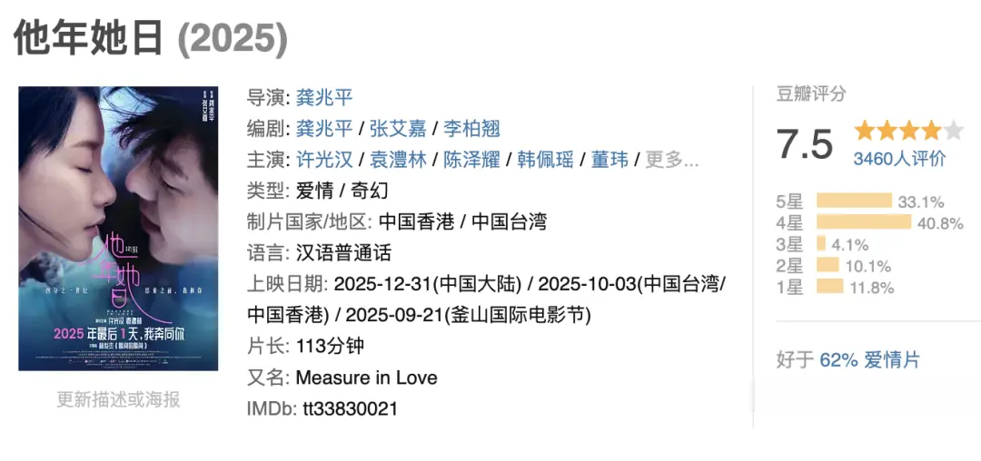 豆瓣评分7.5分的《他年她日》和《用武之地》双双扑街,这两部电影还是很可惜的,你要是说《匿杀》和《寻秦记》口碑不好还可以理解,但这两部电影明显评分更高。